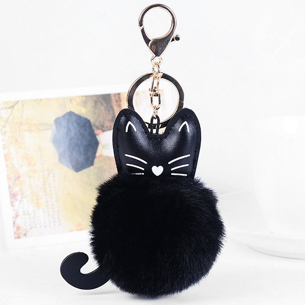 Cute Faux Leather Kitten Fuzzy Ball Keychain