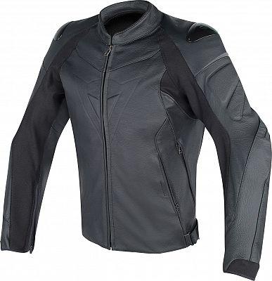 Sporting an aggressive look thatâs ideal for the âdarkâ rider, the Fighter leather jacket is constructed of Daineseâs own D-Skin 2.0 leather and has a sporty cut. Microelastic inserts ensure a trim fit, and with a removable thermal liner and air vents at the back, it easily adapts to changing temperatures. General Features Seamless thermoformed soft inserts Reflective inserts Pocket for G1 and G2 back protector Pockets for Double Chest protector 3 internal pockets 2 outside pockets 1 internal pocket on thermal linerErgonomics Jacket-trousers fastening system Collar with elasticated insert Waist adjustment Lengthened back Inserts in elasticated fabric Microelastic elasticated insertsMain Materials D-Skin 2.0 leather S1 bielastic fabricPerformance Shock Composite protectors certified to EN 1621.1 Standard Jacket certified to Cat. II – 89/686/EEC Directive Shoulder with aluminium insert Removable protectors certified to EN 1621.1 StandardTemperature Nanofeel® liner with Silver ion treatment Localized perforation Air vents on back Removable thermal liner