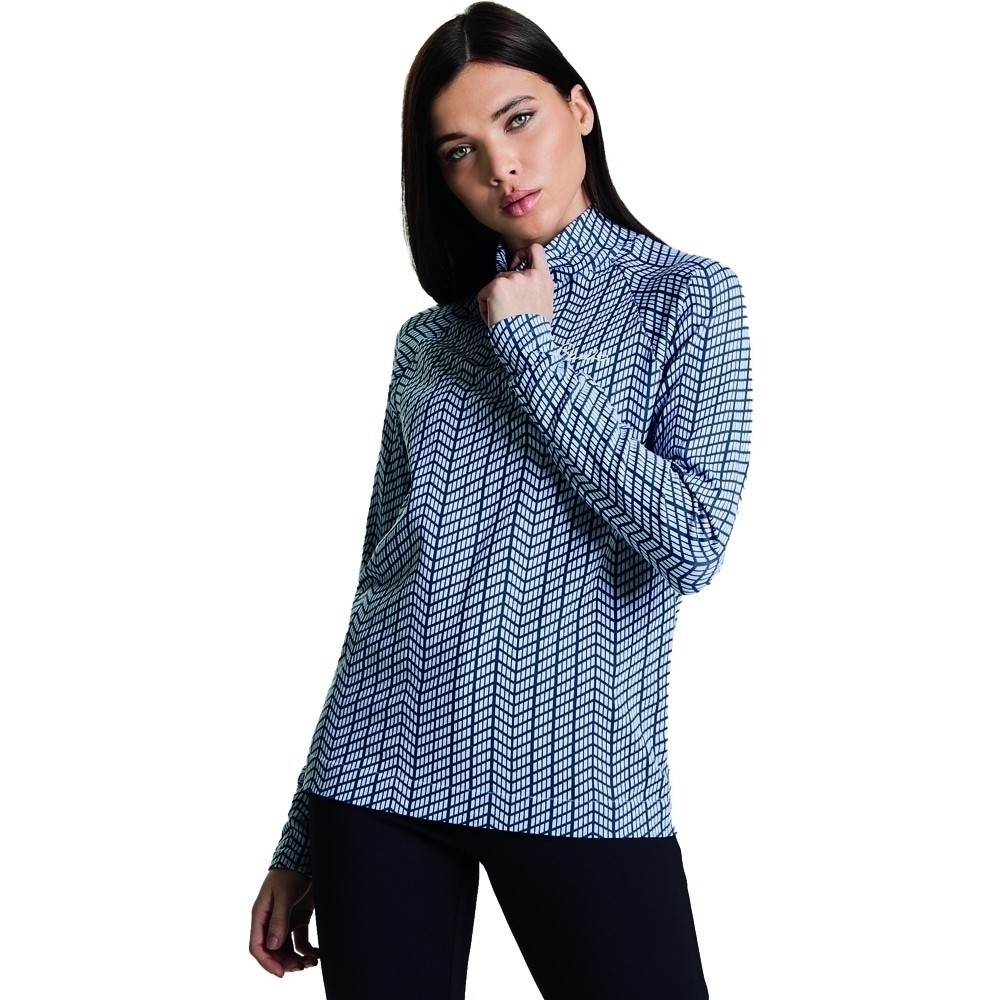 This Dare 2b Women’s Motif II Jaquard Baselayer Top looks attractive when paired with any trouser or layered under any jacket or shrug. It features a seamless construction and the Jacquard knit effect that give you comfort and style. This top has a half front zip with an inner zip and chin guard., Jacquard-knit base layer., Seamless construction., Metal effect centre front zip with inner zip and chin guard., Half zip.