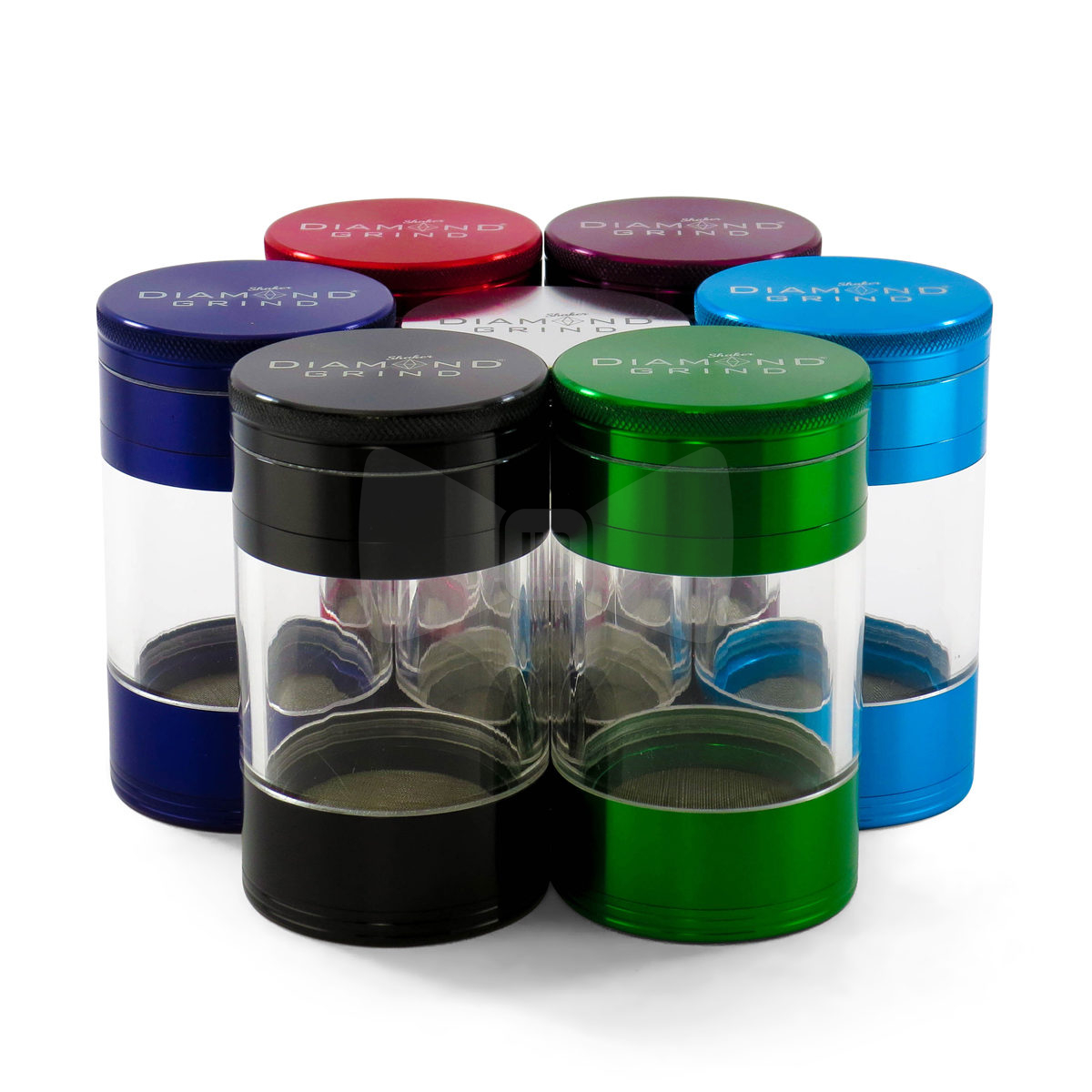 Diamond Grind offers you high-quality grinders that are made of only the best materials and easy to use! These Shaker grinders from Diamond Grind are handy 4-piece aluminum grinders with diamond-shaped toothing to give you a premium cut to your legal smoking herbs with little effort, as well as a handy screen to easily sift your herbs. Every Diamond Grind is milled from a solid block of 6061 aircraft grade aluminum to assure it resists wear and tear over time, and these shaker variants offer you a clear acrylic chamber so that you can easily see how much herb you have stored! The perfect accessory to have on hand for an effortlessly enjoyable smoke every time, these grinders will become your new best friend and favorite accessory! Each Diamond Grind grinder come with a lifetime manufacturers warranty.