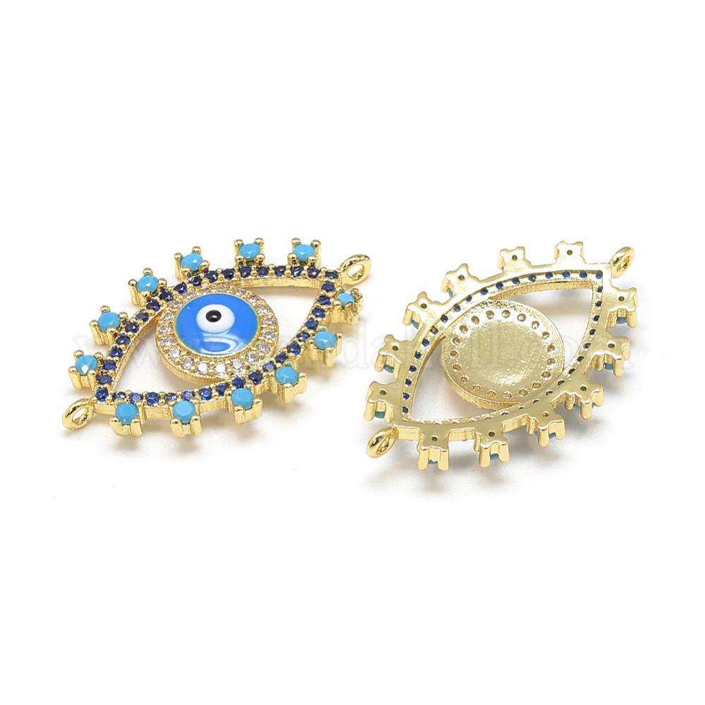 DIY Brass Micro Pave Cubic Zirconia Links, with Enamel, Eye, GoldenSize: about 31.5mm long, 18.5mm wide, 4mm thick, hole: 1.5mm.