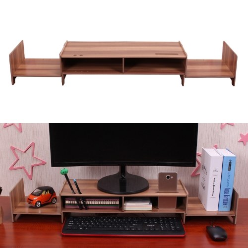Features: Wood–Thicken, sturdy and non-toxic. Not easy to go mold. Utility–Raise up the monitor to your sight-level, helps prevent spinal diseases. Design–Easily transformed. More practical for daily use. Use–Office, school and home desk organizer, computer monitor riser.
