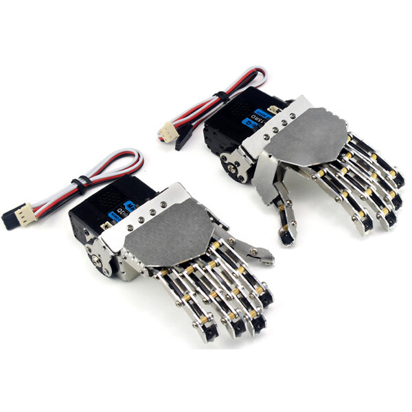 QDS-1503 Robot Arm Smart Metal Hand Manipulative Finger Kit for DIY Robot Description:Name:DIYRobot Smart Metal Hand FingerType:QDS-1503Age:8 years oldMaterial: Aluminum AlloyModel: Left Hand, Right Hand,Left and right handHand Size: 122.73*54.5*32 mmWeight: About 250g (two hands)Servo Size: 40.2*40mm (included)Features:1.It isHandmade mini robot hand which has innovative design and realistic movement.2.A extraordinary product for you to practise and develop aexcellent hands-on skills.3.One Servo links and drives five fingers.Better to use the original servo due tofitted size and holes.Note:1.If you want move five fingers individually,it has toreform with five servosID1063242.Or we recommend this five moving robot fingers armID1063112.2.It isUnassemble Delivery,which required you withpatience and hands-on abilitybut without difficulty.Assembly Instruction:Click HerePackage included:1 x Servo and parts1 x Accessories Bag(All double for two hands)