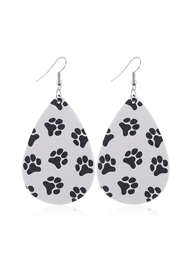 Dog Paw Print Faux Leather White Earring Set FREE Shipping & 30 Days Easy Return