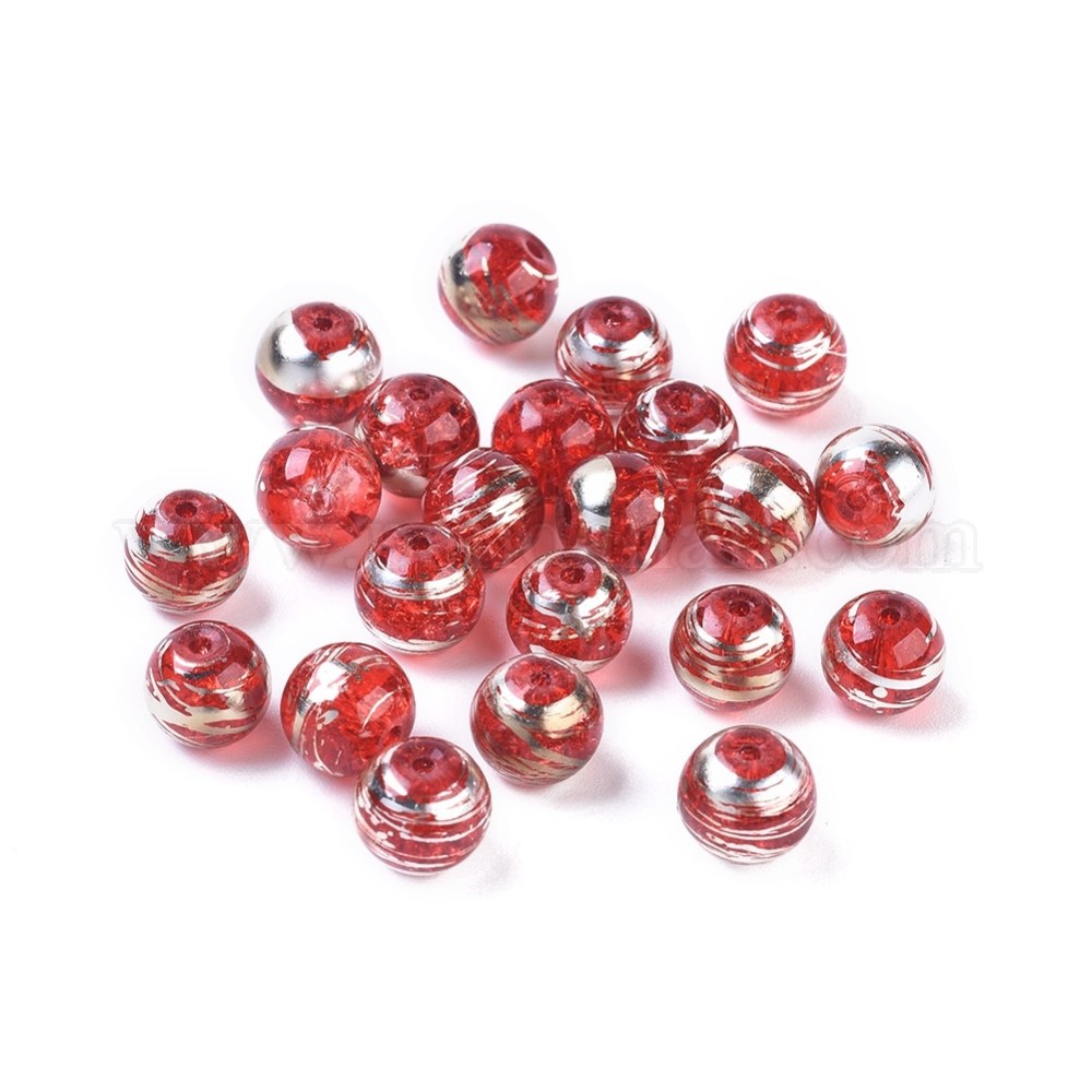 Drawbench Transparent Glass Beads, Round, RedSize: about 10mm in diameter, hole: 1.6mm.
