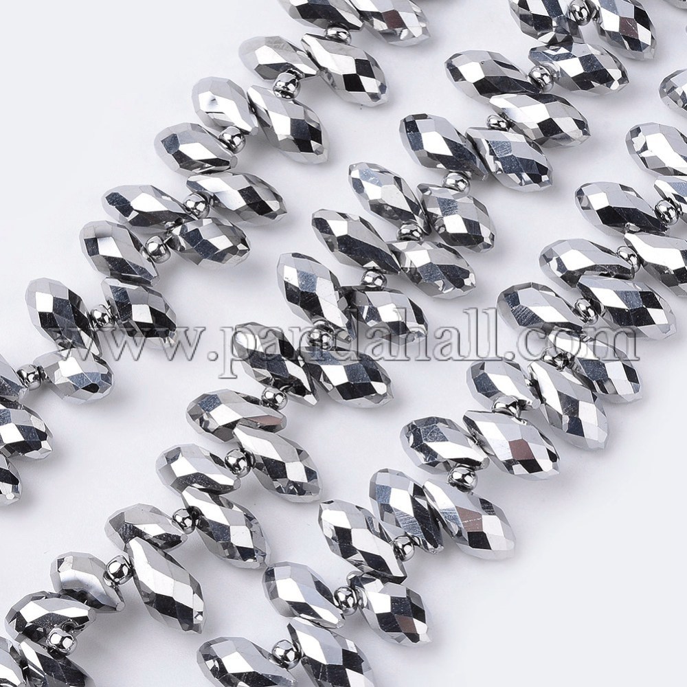 Electroplate Glass Beads Strands, Faceted, Drop, Silver Plated, 13x6mm