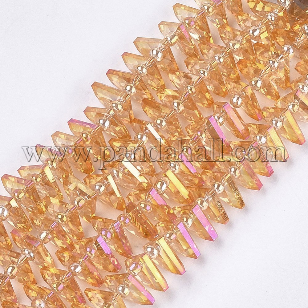 Electroplate Glass Beads Strands, Faceted, Fan, OrangeSize: about 8~8.5mm long, 10.5mm wide, 3.5mm thick, hole: 1mm; about 100pcs/strand, 19.6”.