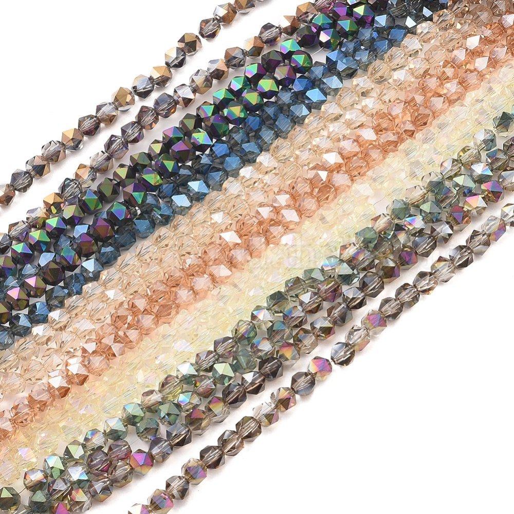 Electroplate Glass Beads Strands, Faceted, Round, Mixed ColorSize: about 6mm wide, 6mm long, 5mm thick, hole: 1.2mm; about 100pcs/strand, 19.3″(49cm).