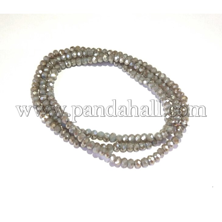 Electroplate Glass Beads Strands, Full Rainbow Plated, Faceted, Rondelle, SilverSize: about 3mm in diameter, 2mm thick, hole: 0.8~1mm, about 196~204pcs/strand, 17.7~18.5″(45~47cm).