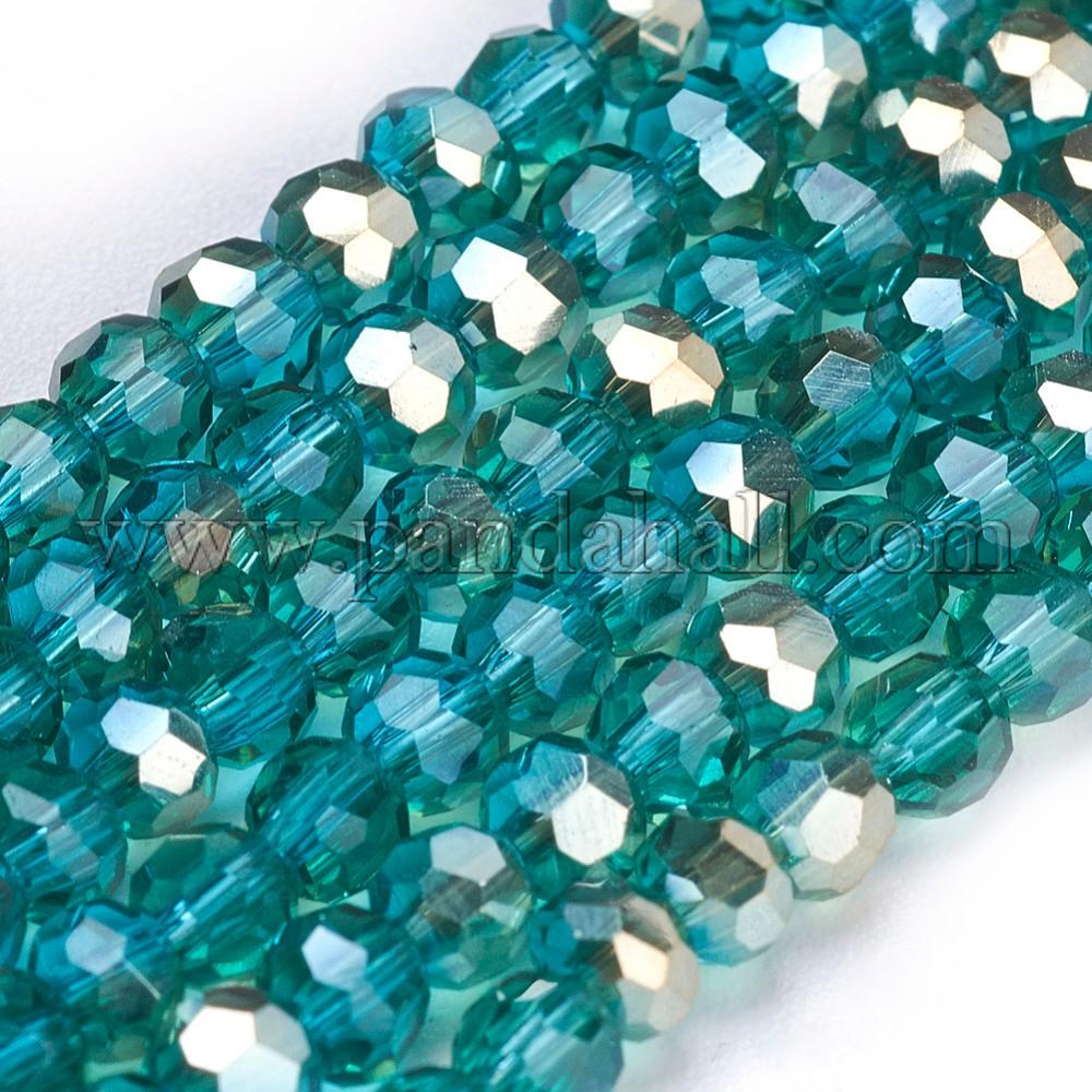 Electroplate Glass Beads Strands, Half Plated, Faceted Round, MediumTurquoiseSize: about 3mm in diameter, hole: 1mm, about 100pcs/strand, 11.5″.
