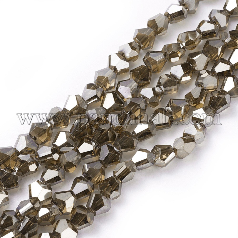 Electroplate Glass Beads Strands, Pearl Luster Plated, Faceted, Drop, CoffeeSize: about 8mm wide, 7mm long, 6.5mm thick, hole: 1.2mm; about 70pcs/strand, 18.1″(46cm).