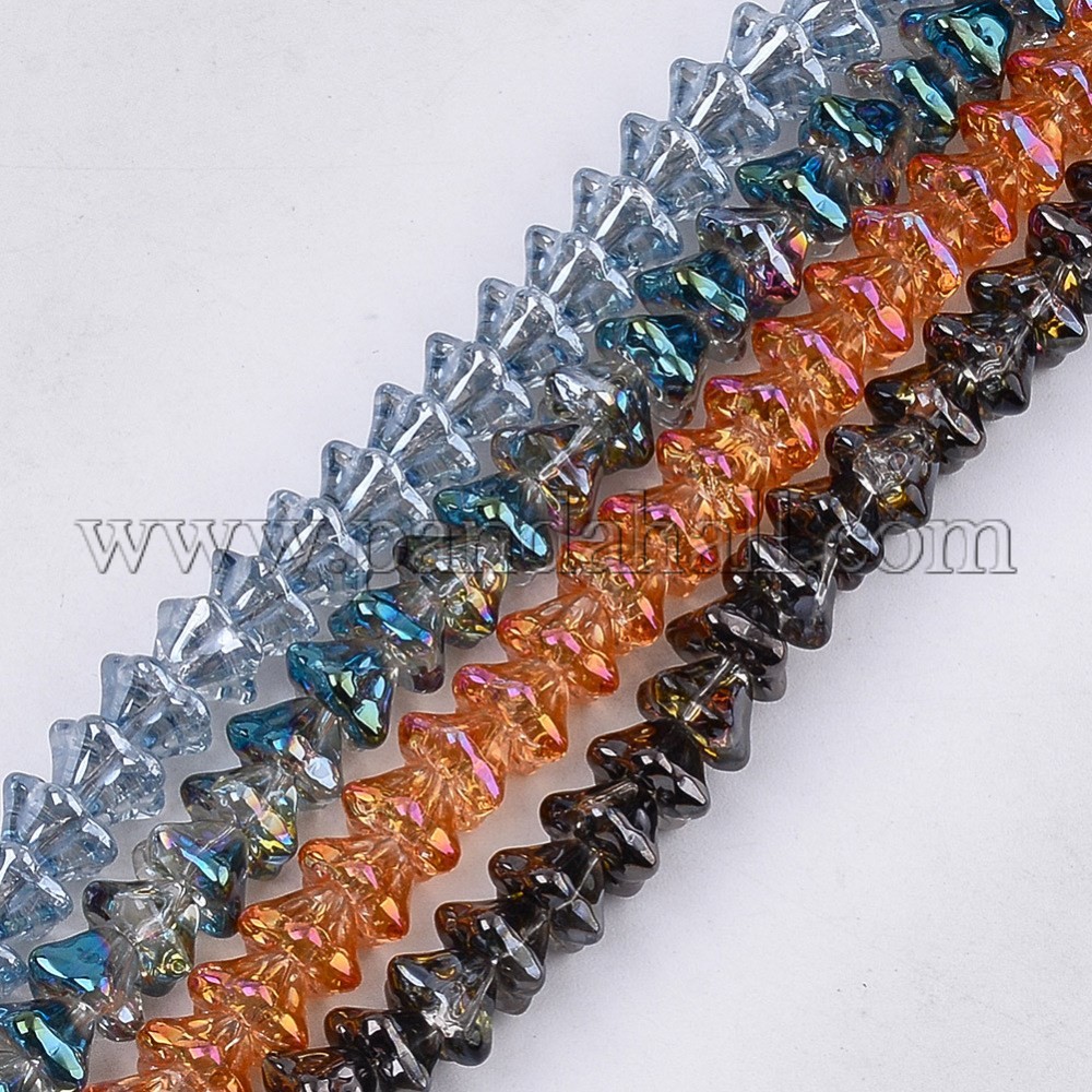 Electroplate Glass Beads Strands, Petunia, Mixed ColorSize: about 6mm long, 8mm wide, 8mm thick, hole: 0.9mm; about 120pcs/strand, 23.6″.