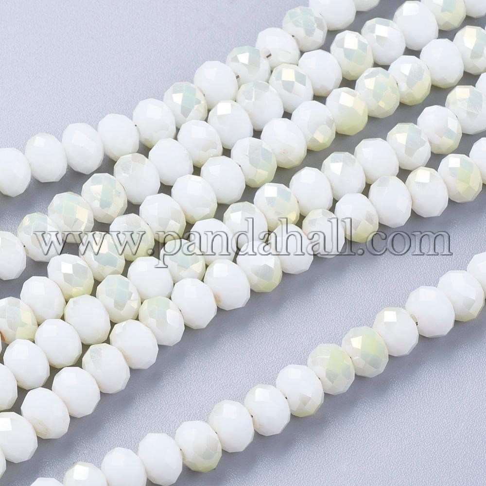 Electroplate Glass Faceted Rondelle Beads Strands, Imitation Jade, Half Plated, WhiteSmokeSize: about 4mm wide, 6mm long, hole: 1mm; about 100pcs/strand, 18.1″.