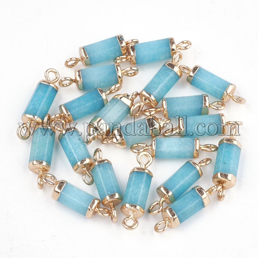 Electroplate Natural White Jade Links, with Iron Findings, Dyed, Column, Golden, Size: about 20~21mm long, 5~6mm wide, 5~6mm thick, hole: 1.8mm.