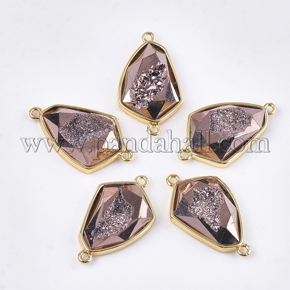 Electroplate Synthetic Druzy Agate Links, with Brass Findings, Polygon, Golden, RosyBrownSize: about 30.5mm long, 18mm wide, 7mm thick, hole: 1.6mm.
