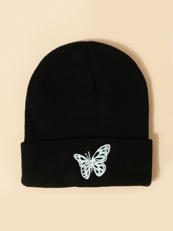 Embroidered Butterfly Pattern Elastic Knitted Hat