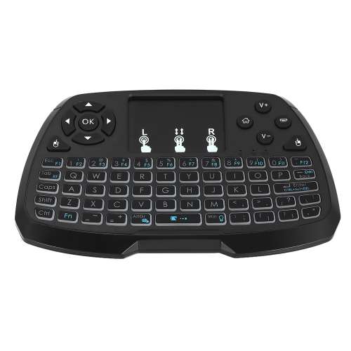 Features: Multifunctional Combo: Wireless QWERTY keyboard, touchpad mouse and LED backlit, 3 in 1 smart combo. Compatible with PC, Notebook, Smart TV, Android TV BOX and more. 2.4GHz Wireless Connection: With included USB interface adapter, no driver needed, plug and play. 2.4GHz wireless connection, enjoy up to 10 meters wireless control. Backlit Function: With backlit function, you can conveniently use the keyboard in the dark. Blue, Green, Red and White four colors of backlight can be freely switched (Fn+Win). High Sensitive Touchpad: Easy to operate left mouse, right mouse and rolling screen. Supports touchpad DPI adjustable functions, better matching different sizes of screen. 69 Keys Keyboard: The mini keyboard ensures convenient typing with 69 keys, and you can control your devices on your couch. Also features auto sleep and auto wake mode.