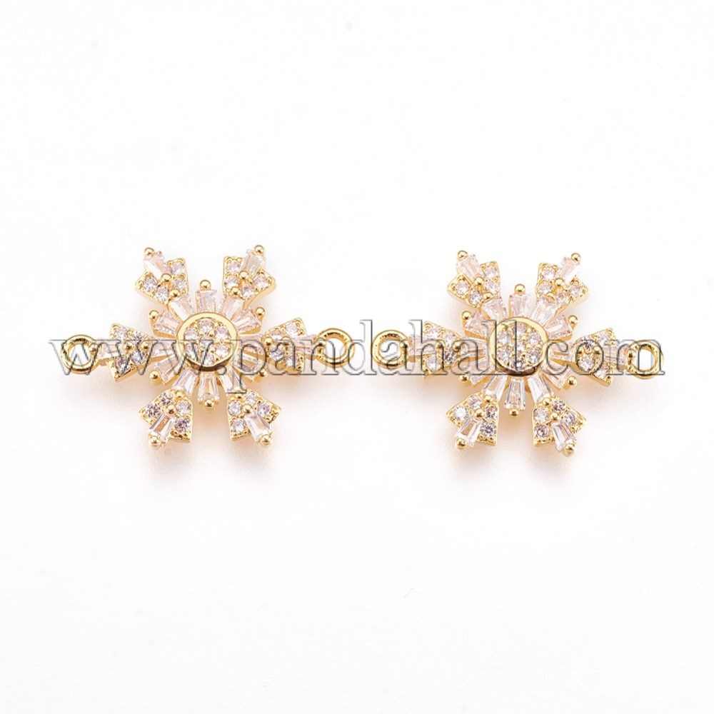 Environmental Brass Micro Pave Cubic Zirconia Links, Lead Free & Cadmium Free, Snowflake, Clear, GoldenSize: about 21mm wide, 15mm long, 3mm thick, hole: 1.2mm.