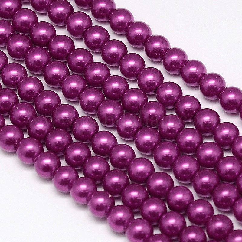 Environmental Dyed Glass Pearl Round Bead Strands, Cotton Cord Threaded, CeriseSize: about 8mm in diameter, hole: 0.7~1.1mm, about 52pcs/strand, 15″.Please Note: Because the beads are dyed and different batches, the color of beads may vary slightly from the picture.