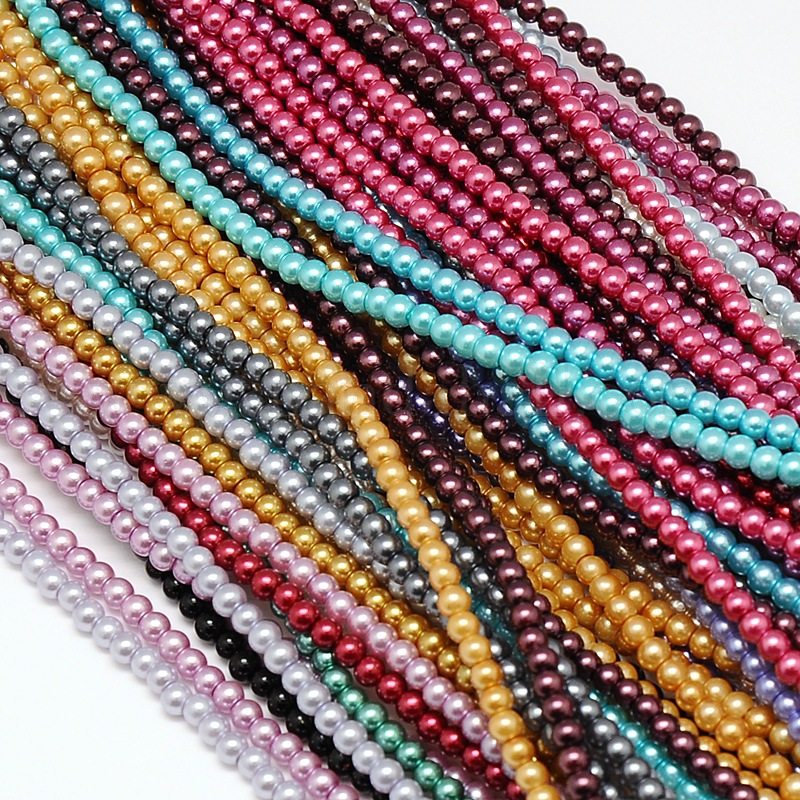 Environmental Dyed Glass Pearl Round Bead Strands, Cotton Cord Threaded, Mixed ColorSize: about 4~4.5mm in diameter, hole: 0.7~1.1mm, about 104pcs/strand, 15″.