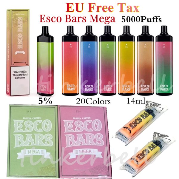 ESCO BARS Mega 5000 Puffs Cigarettes Disposable Vape Pen Rechargeable VAPES 800mah Battery 12 Colors 5% Vapes HOT cigs VS Puff Geek FLair Elux XXL