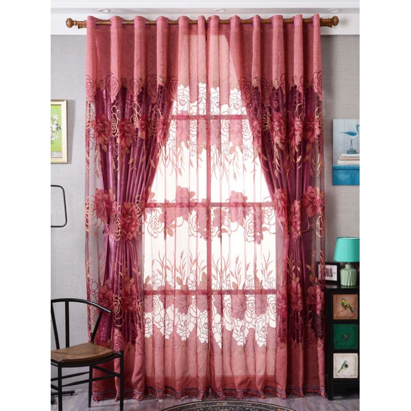 Europe Flower Embroidered Sheer Window Screen Tulle