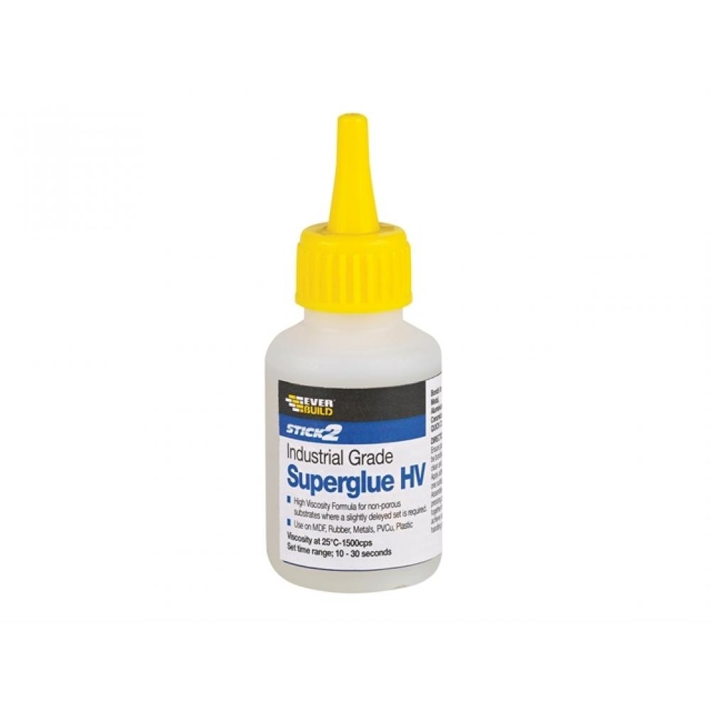 Everbuild Industrial Superglue HV is a high viscosity flash setting industrial adhesive based on advanced cyanoacrylate technology. It can fill gaps up to 0.25mm and is 100% solvent free. Can be used on MDF, rubber, metals, PVCu and plastics. Viscosity at: 25°C – 1500 cps. Set time: 10 to 30 seconds. Available in two sizes.Everbuild Industrial Superglue HV Size: 50g.