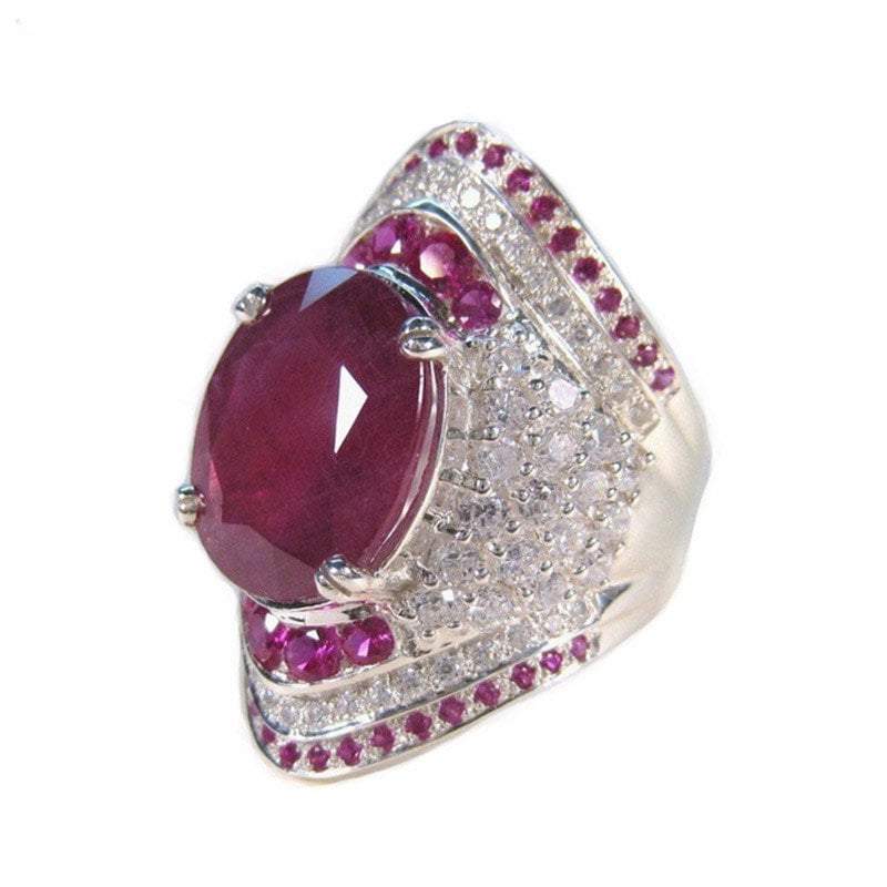 Fashion Exaggerated Natural Ruby Crystal Artificial Diamond Ring