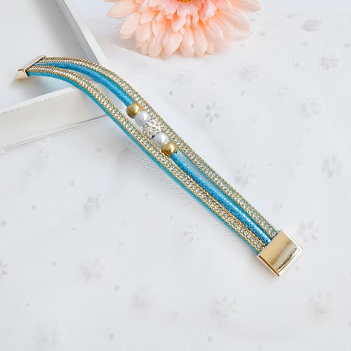 Fashion Women Multi-layer Bangle Bracelet Crystal Beaded Leather Magnetic Unisex Type Wristband