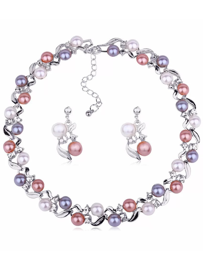 Faux Pearl Earrings Necklace Set