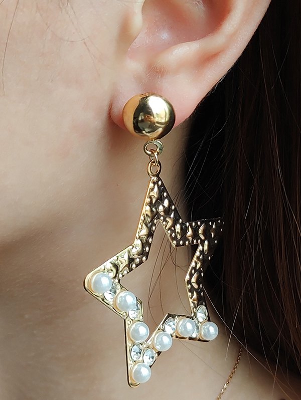 Faux Pearl Rhinestone Star Shape Drop Earring