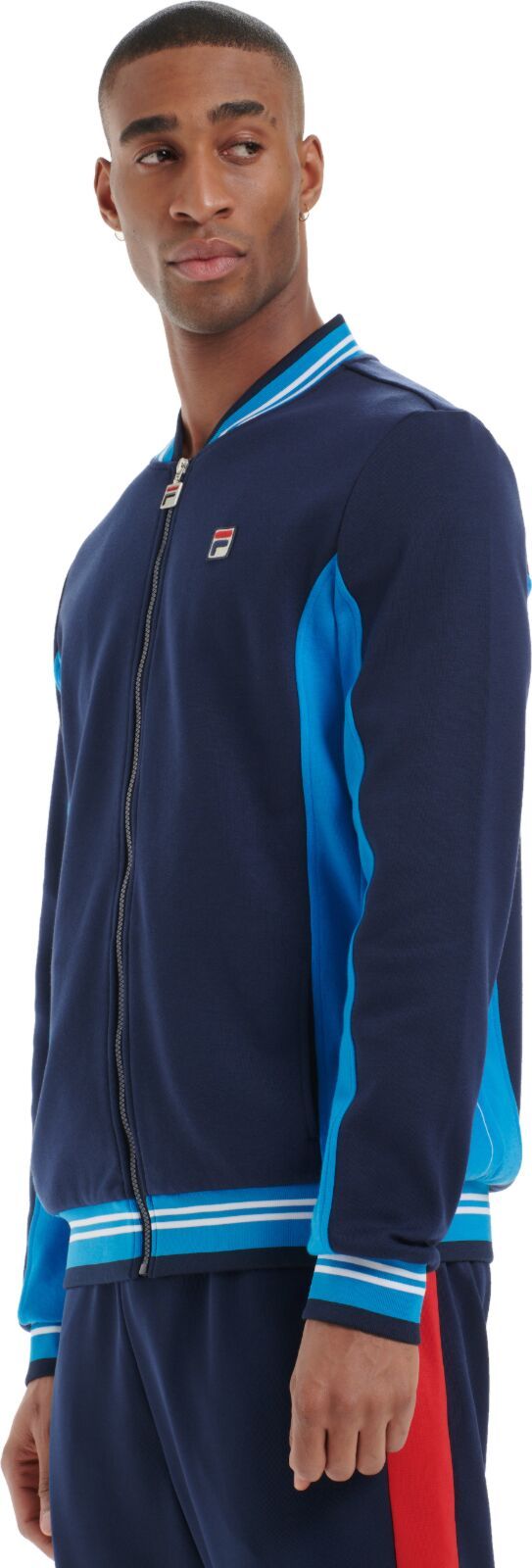 This brilliant track top from Fila features official branding and can be easily thrown on with any outfit for a stylish look. This versatile top looks great with jeans. Machine washable. Fila style code – LM161RN1-413 / Peacoat/Blue Aster/White
