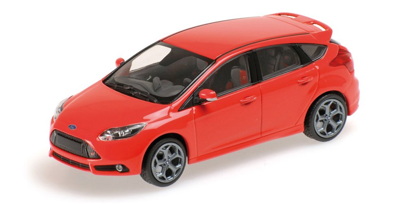 Minichamps 1:43 Ford Focus Diecast Model Car 410081001 This Ford Focus ST 2011 is red and features working wheels. It is made by Minichamps and is 1:43 scale (approx. 10cm / 3.9in long). Limited edition of 1008 pieces worldwide. Comes in a display case.