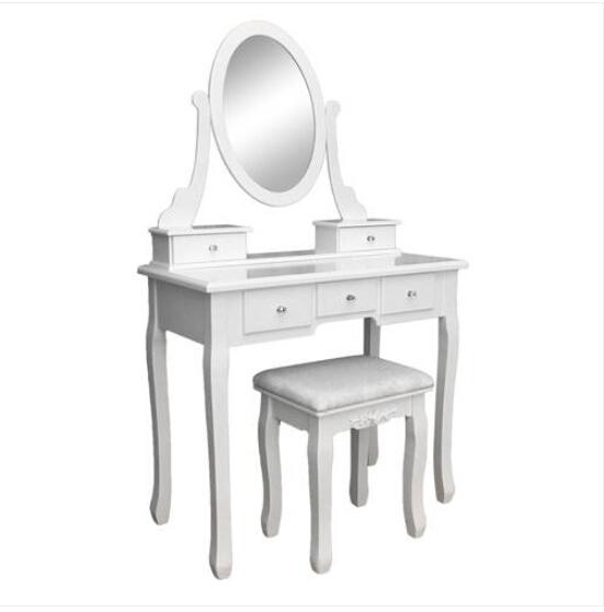Specifications: 1. Material: MDF 2. Color: White, Black 3. Dimensions: (31.5 x 15.75 x 55.51)" / (80 x 40 x 141)cm (L x W x H) 4. Weight: 40.79 lbs / 18.5 kg 5. Drawer Quantity: 5Pcs 6. Mirror Feature: 360°Rotation