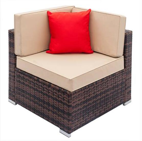specifications: 1. material: pe rattan & iron & polyester fabrics & vertical cotton 2. rattan color: brown gradient 3. dimensions: (29.5 x 29.5 x 24.8)" / (75 x 75 x 63)cm (l x w x h) 4. iron pipe: square pipe 15*15*0.7mm 5. mat: polyester180g, back cushion 8cm, cushion 10cm 6. vertical cotton: 1200g 7. glass: 5mm thickness stainless steel 8. rattan: 8.5×1.1 pe rattan 9. fastener: blister packing 10. pillow color: red 11. foot pad: with seven-word feet, one-word foot