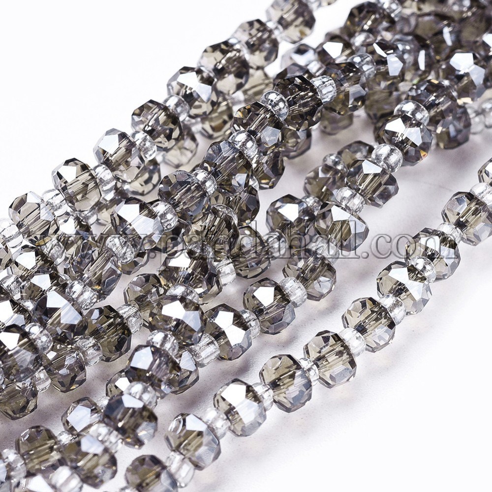 Glass Beads Strands, Faceted, Rondelle, CoffeeSize: about 4mm in diameter, 2.5mm thick, hole: 0.8mm; about 150pcs/strand, 23.6″(60cm); beads: 2~2.5×1.5~2mm.