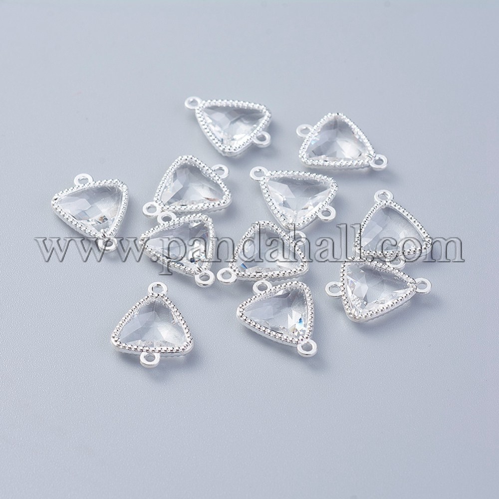 Glass Links/Connectors, with Environmental Alloy Open Back Berzel Findings, Faceted, Triangle, Silver, ClearSize: about 12mm wide, 16mm long, 4.5mm thick, hole: 1.2mm.