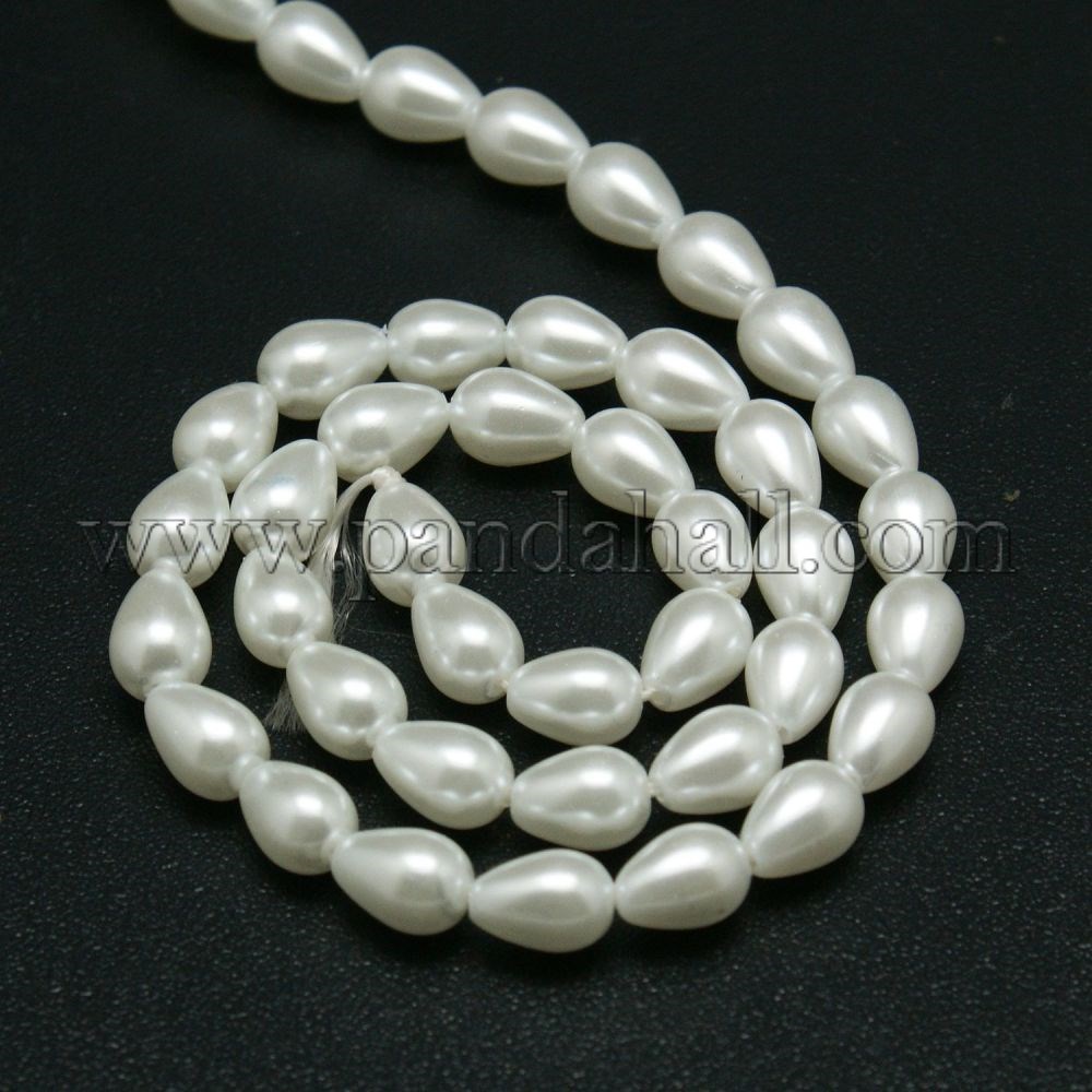 Glass Pearl Teardrop Beads Strands, WhiteSize: about 5mm wide, 7mm long, hole: 1mm; about 56pcs/strand, 15.7″.Please Note: Because the beads are dyed and different batches, the color of beads may vary slightly from the picture.