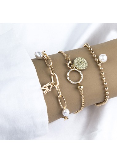 Gold Metal Chain Pearl Detail Bracelet Set FREE Shipping & 30 Days Easy Return