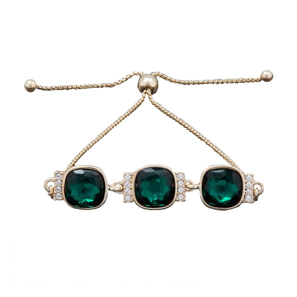 Gold Plated Green Cushion Made With Swarovski Crystal Toggle Bracelet