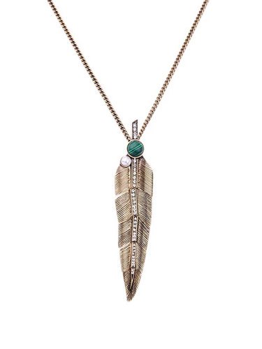 Golden Feather Synthetic Materials Created Emerald Necklace