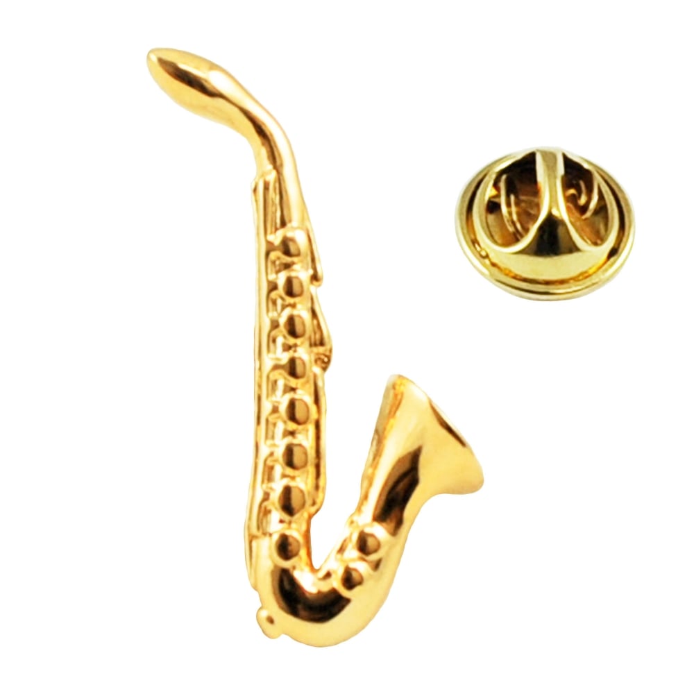 Golden Saxophone Lapel Pin Badge Butterfly Clip Fastening Presented in a Gift Box