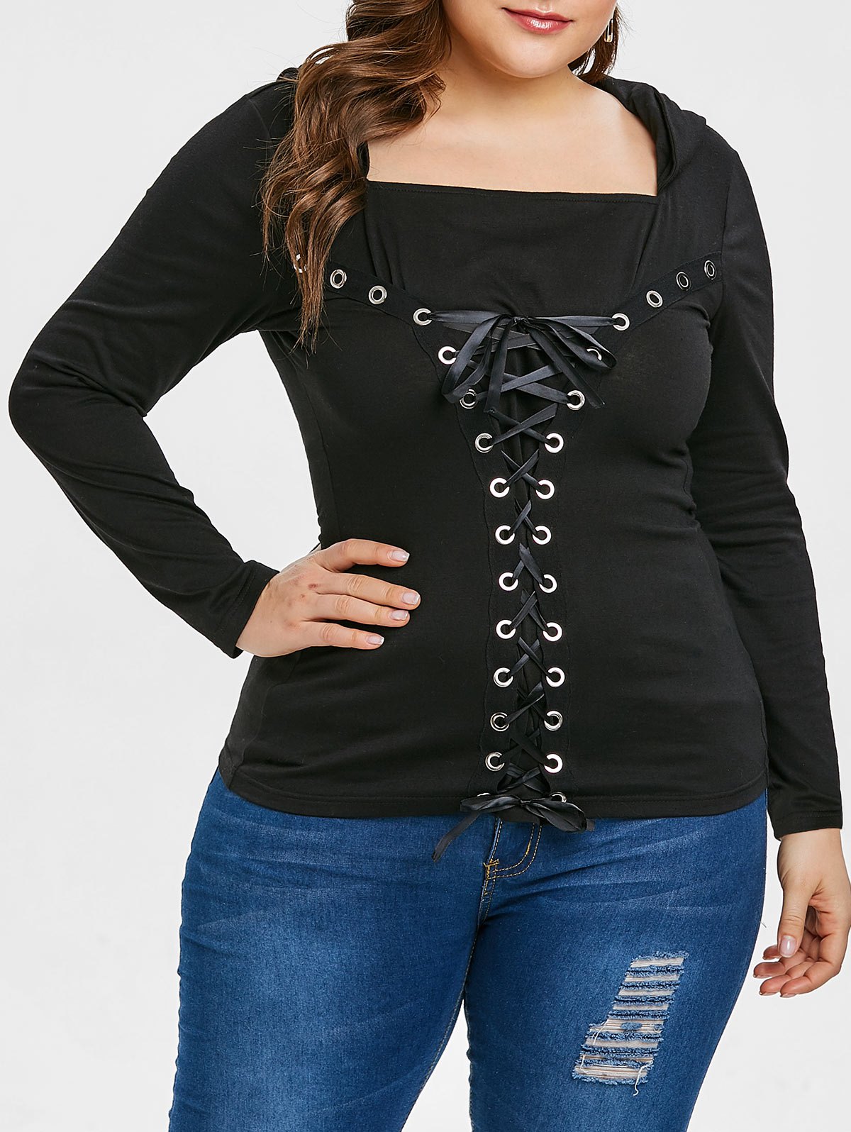 Be the first to review “Grommet Lace Up Plus Size T-shirt”
