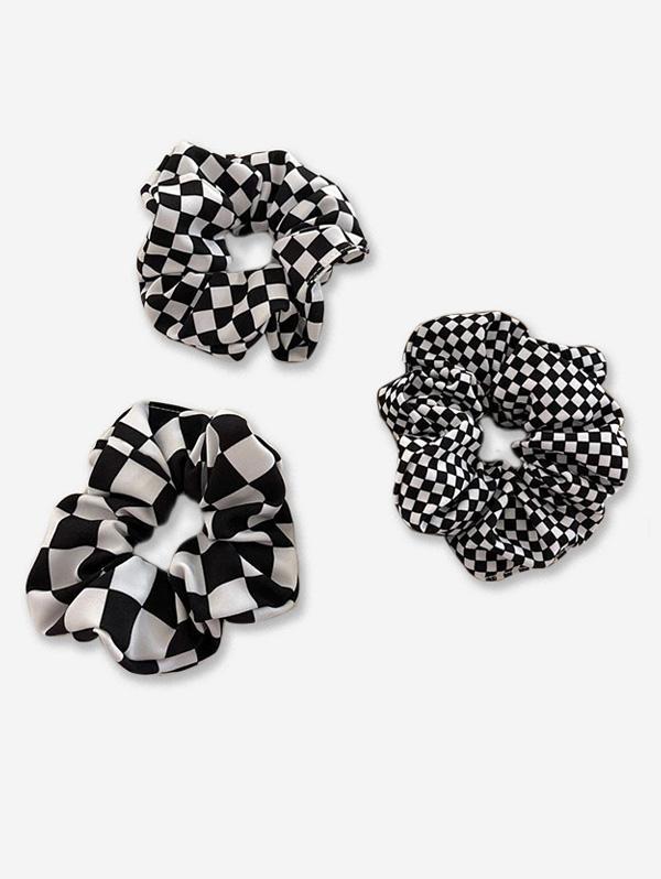 Zaful A set of monochrome checkered print scrunchies, add a touch of flair to any look. Headwear Type: Elastic Hair Band Group: Adult Gender: For Women Style: Fashion Pattern Type: Colorblock,Plaid Material: Material Weight: 0.1000kg Package: 3 x Scrunchies