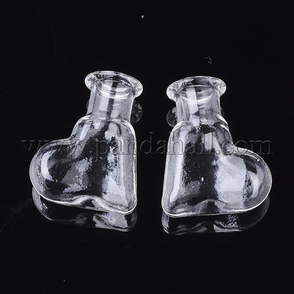 Handmade Blown Glass Globe Cover, For Bottle Pendant Making, Heart, ClearSize: about 25~25.5mm long, 20mm wide, 11mm thick, half hole: 5.5mm.