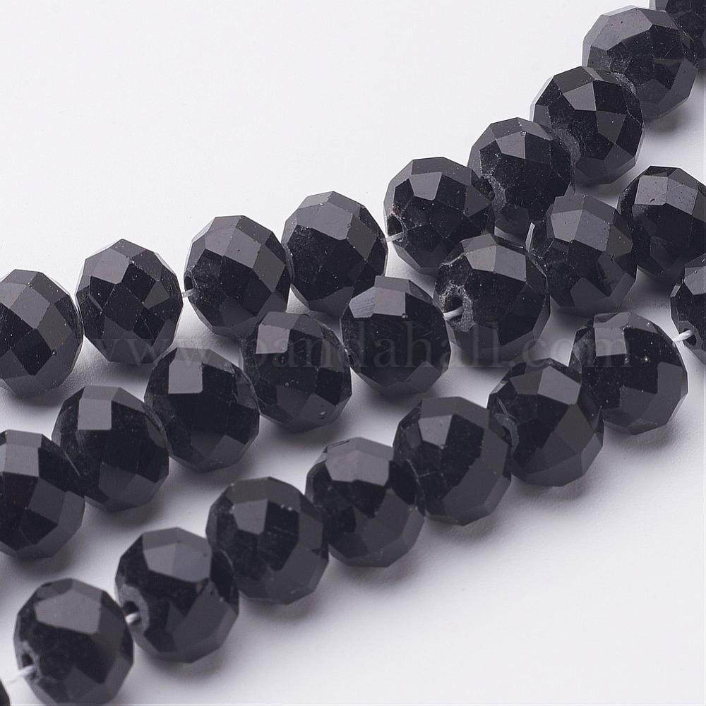 Handmade Glass Beads, Crystal Suncatcher, Faceted, Rondelle, BlackSize: about 10mm in diameter, 7mm thick, hole: 1mm.Glass beads are top fashion glamour with low-cost, lightweight. Light weight, economy additions for quick-selling jewelry creations. We will introduce you our jewelry sets J-JS00011, you can use these beads to make like our item.