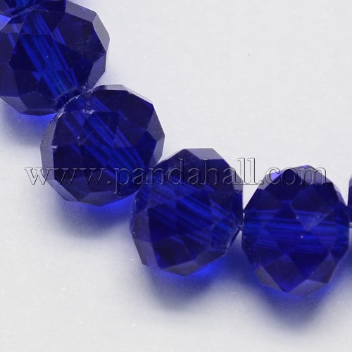 Handmade Glass Beads, Faceted Rondelle, DarkBlueSize: about 14mm in diameter, 10mm thick, hole: 1mm; about 60pcs/strand.
