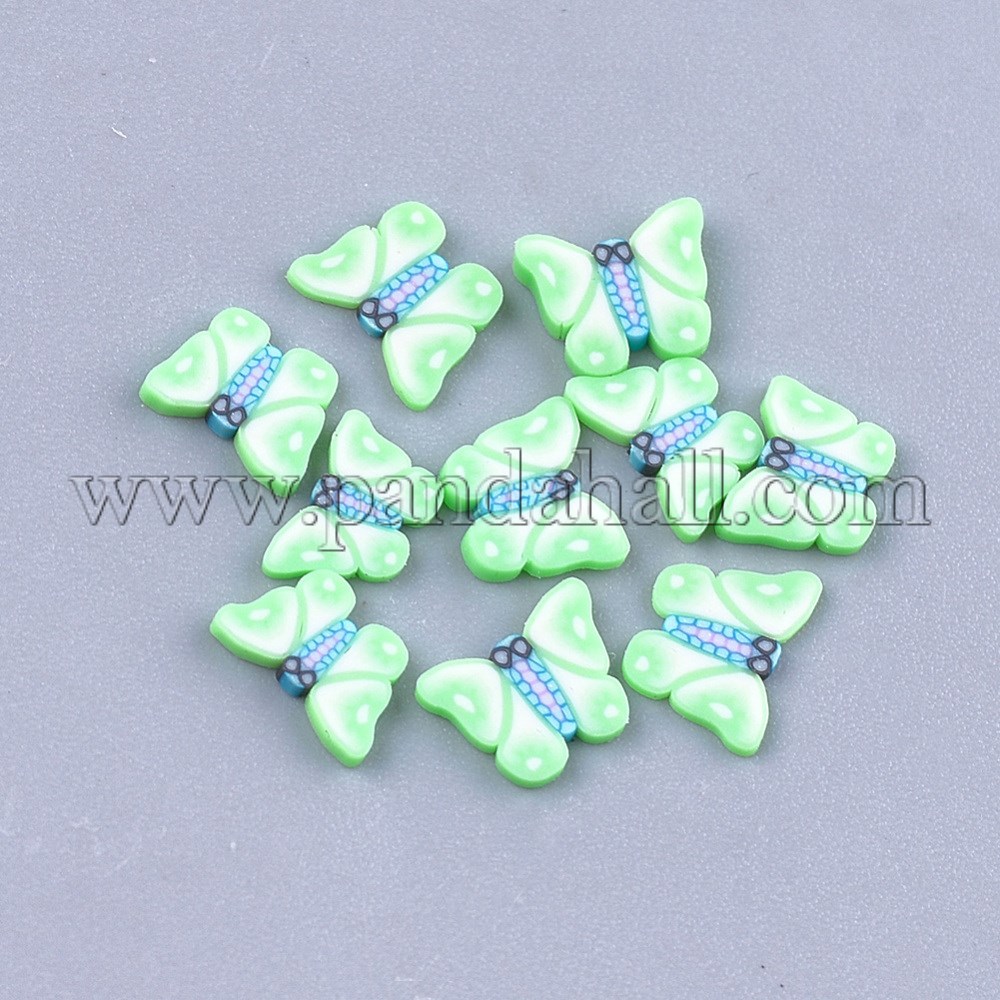 Handmade Polymer Clay Cabochons, Nail Art Decoration, Butterfly, MediumSpringGreenSize: about 4.5~5.5mm long, 6~7mm wide, 0.5~1mm thick; about 1000pcs/bag.