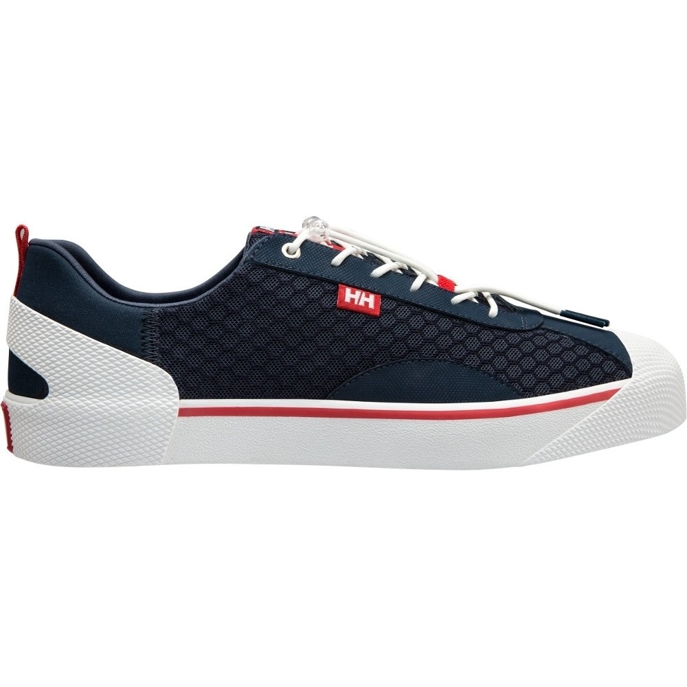 Offering complete protect out on the seas the men’s Job-Jive sailing trainers from Helly Hansen have been expertly crafted from Hydrophobic quick-drying material with a HellyWear overlay and a protective vulcanized low-cut rubber cupsole. This highly functional pair come complete with a neoprene heel and flexible rubber outsole., Hydrophobic Synthetic quick-drying textile., HellyWear overlay., Neoprene heel., Protective vulcanized rubber cupsole., Flexible rubber outsole.