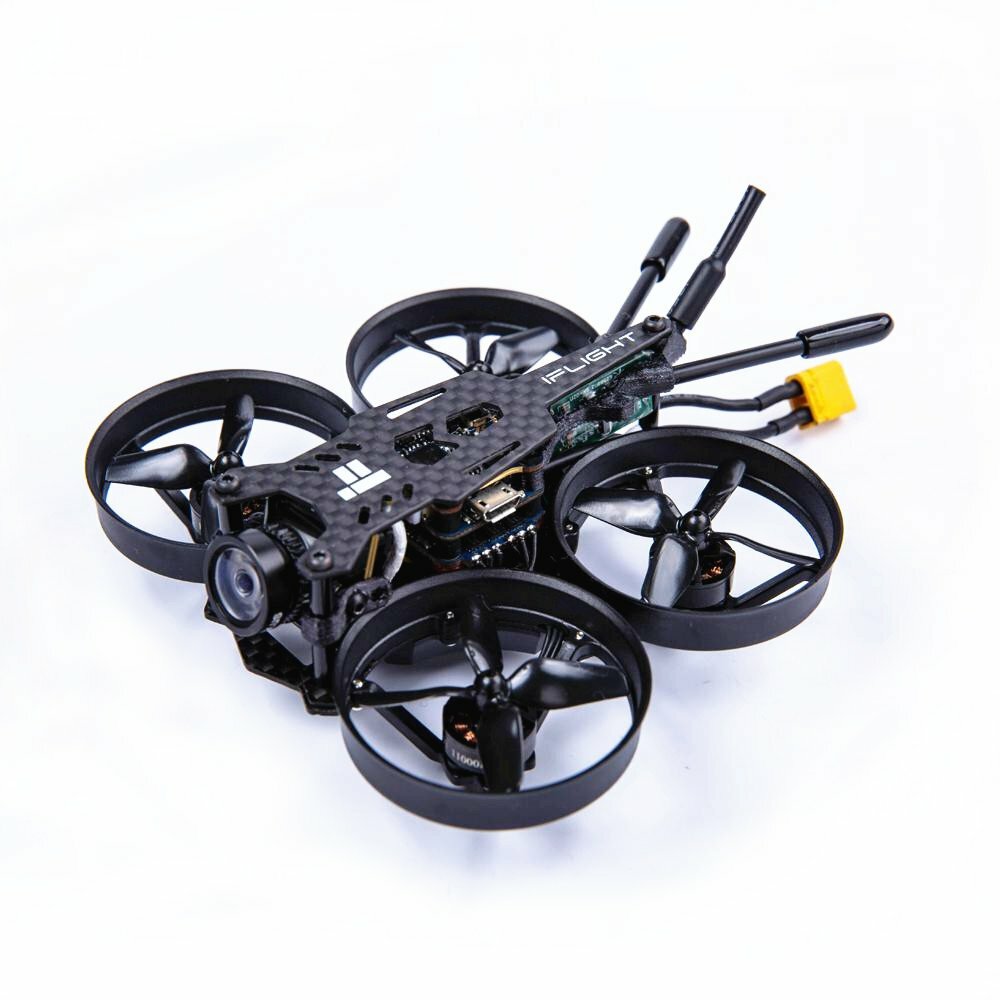 iFlight CineBee 75HD Black Version 2-3S Whoop RC FPV Racing Drone W/ SucceX mirco F4 12A 200mW Turtle V2 HDNotes: this RC drone comes with 2-3S, but if you want to use 4S, you have to change the compatible motor.Description:iFlight CineBee 75HD is the latest BNF creation of minimum weight at a spectacular performance, traditional but versatile and upgradeable design, carrying a 1080p (up to 60fps) micro cam stack and recording JELLOFREE footage flying through smallest gaps and spots. If slow cruising or fast racing, the cam angle goes from 0-55 degrees with motors from 2S-4S.Our target was pretty clear, create a lightweight, durable but jellofree whoop that can shoot high-quality HD videos. We decided to use a combination of carbon, plastic, and TPU to have a rigid bottom plate that doesnt oscillate, with still crash resistant abilities and integrated prop guards giving the whole frame strength. The stack is soft-mounted, the cam is soft-mounted, the motors run smooth – keep your props in a good condition, and you wont have to worry about jello!Specification:Item name:iFlight CineBee 75HD 2S whoopTotal Dimensions: 110x93x30mmFrame Wheelbase: 75mmBottomTop Plate Thickness: 1mmStandoff height: 22mmBuild Weight:64.4g (without battery, receiver)Connector: XT30Support Battery: 2SFlying Time: over 3mins (battery recommend:2S 420 mAh)SucceX Micro 16×16 F4 2-4S Flight ControlSucceX Micro 12A 4in1 2-4S BlheliS ESCSucceX Micro 200mW switchable VTXiFlight 1103 2-3S motors(1.5mm shaft)
